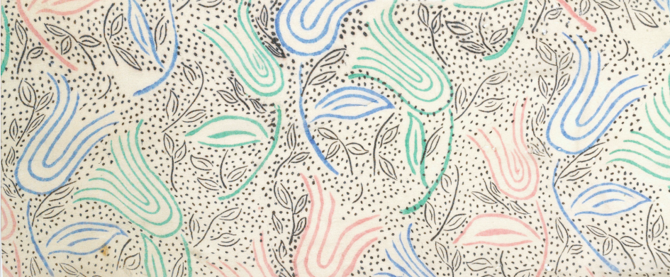 Toile imprimée pour ameublement, semis de tulipes France, manufacture inconnue, 1889, impression à la planche de bois sur coton