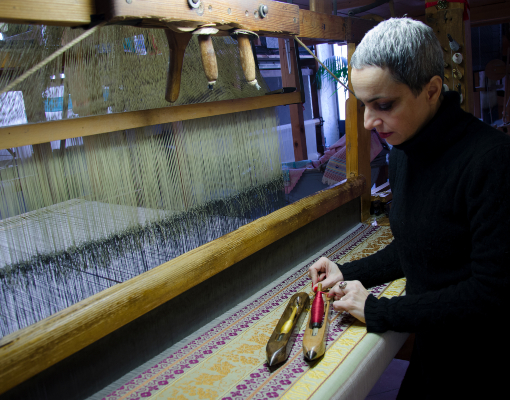 Le tissage sur les métiers à bras est une expérience méditative, qui permet d'être présent dans l'instant, de relâcher les tensions et les inquiétudes, et de plonger dans un état de profonde sérénité. En plaçant vos mains sur ces métiers à tisser, vous sentirez le passé et le présent se fondre dans un flux continu de fils colorés. En s'imprégnant de la fascination exercée par cette technique centenaire, les étudiants peuvent suivre des cours, d'une journée à plusieurs semaines et bénéficier d'un large éventail de possibilités d'hébergement dans le centre historique médiéval, ce qui ajoute au charme de l'expérience.