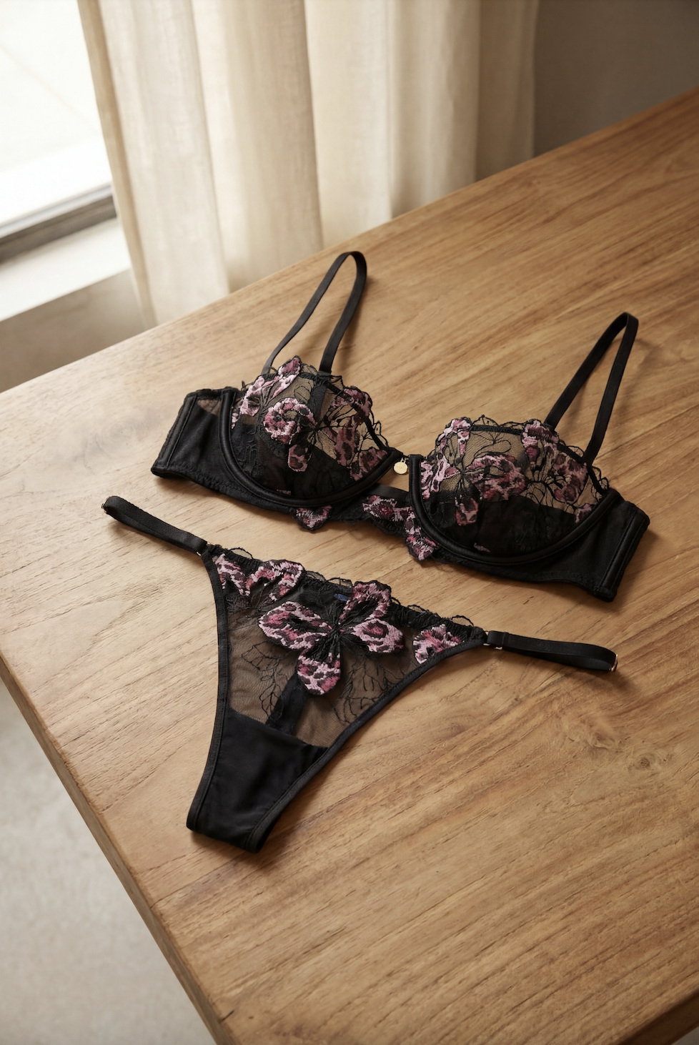 Dans les lignes féminines, l’animalier est travaillé de manière nuancée, entre versions discrètes associées à la dentelle ou aux transparences, et propositions plus visibles avec des finitions satinées. L’offre alterne entre produits du quotidien et pièces plus mode.